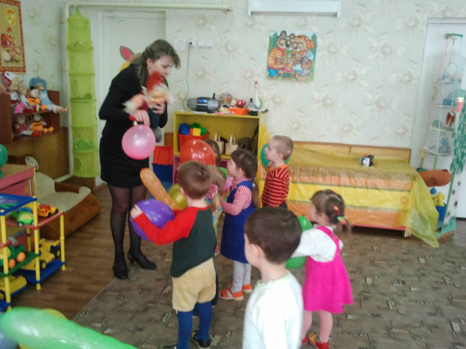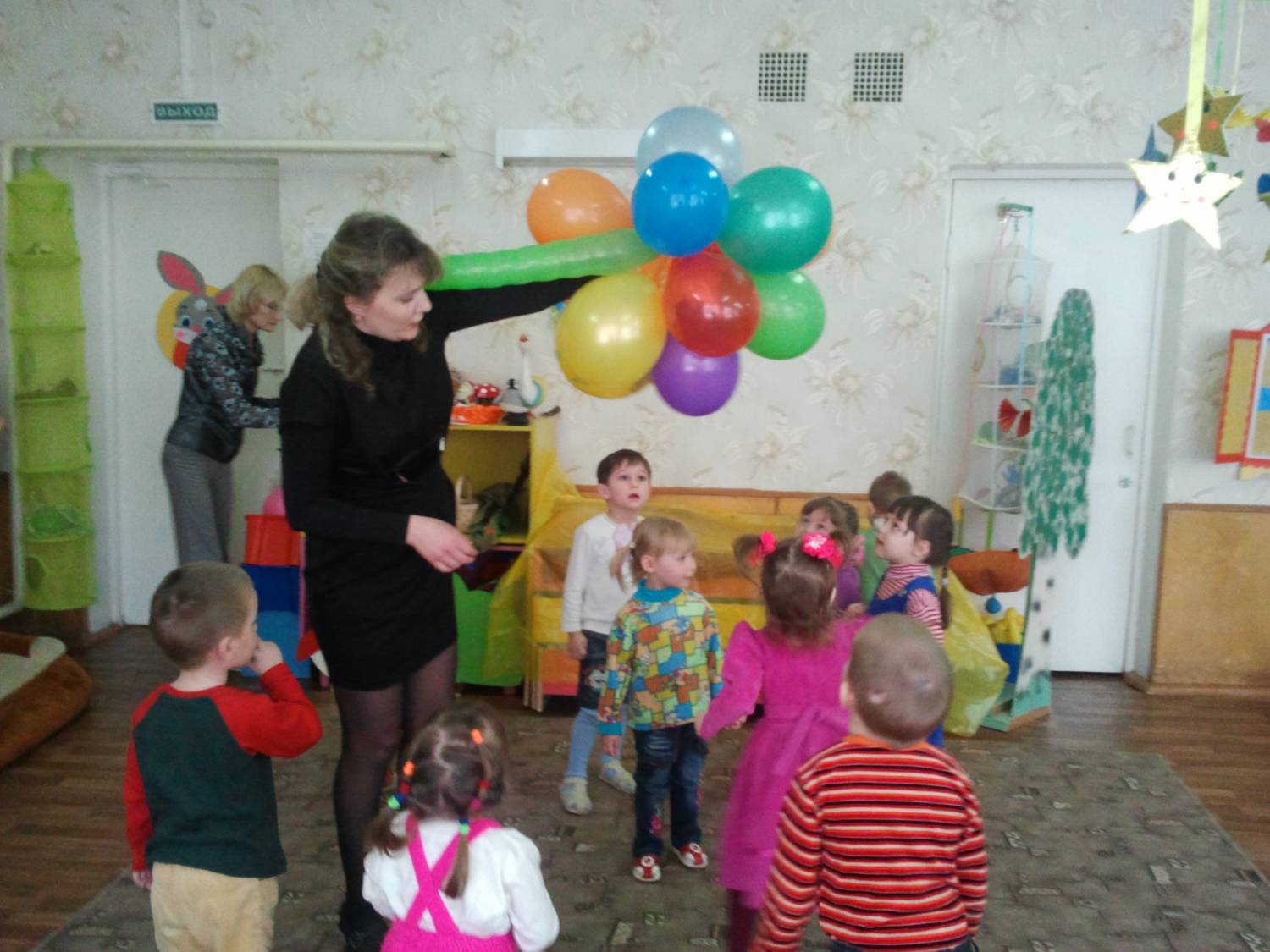 Воспитатель подходит вместе с детьми